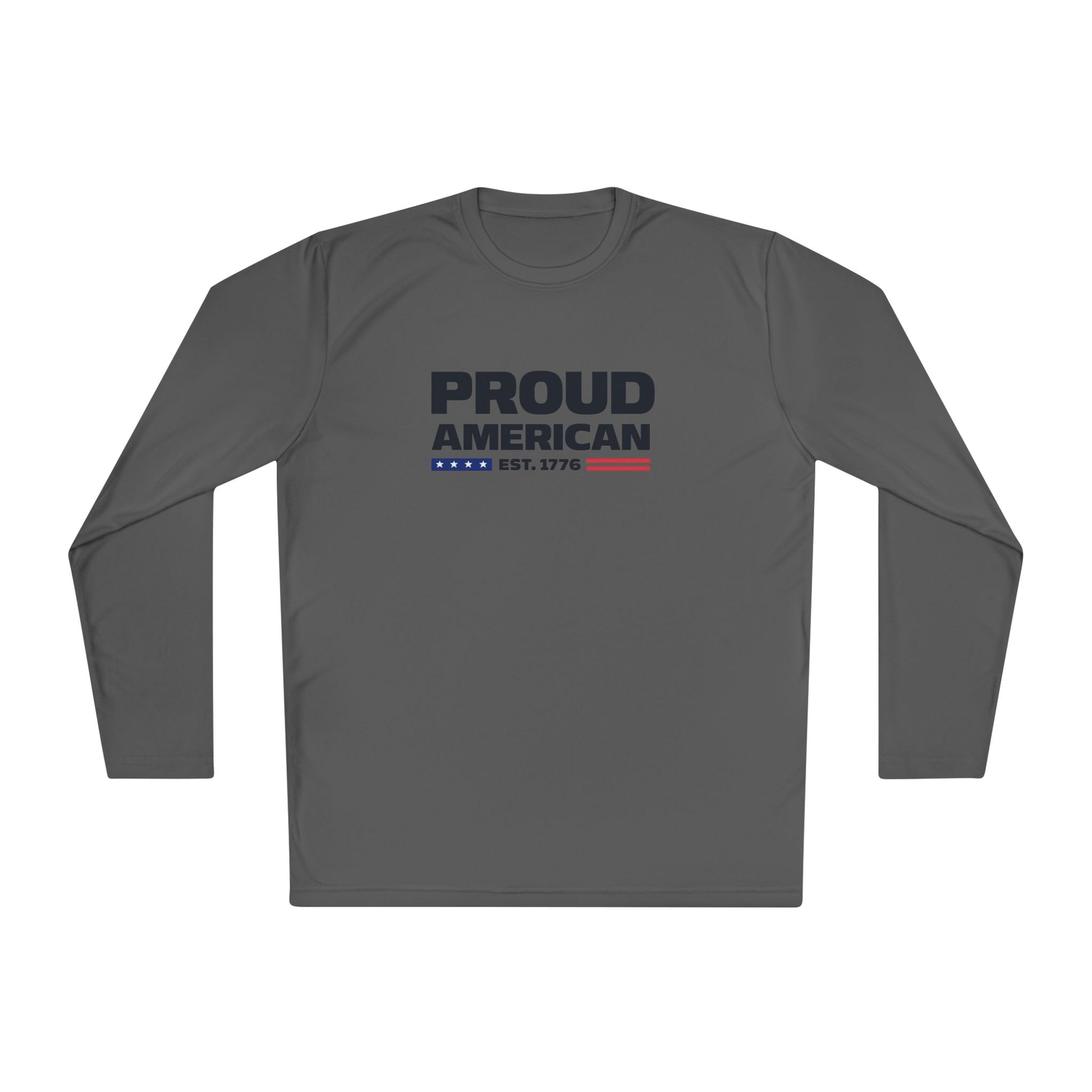 Proud American Long Sleeve Tee — "Proud American" Patriotic USA Shirt (Est. 1776)
